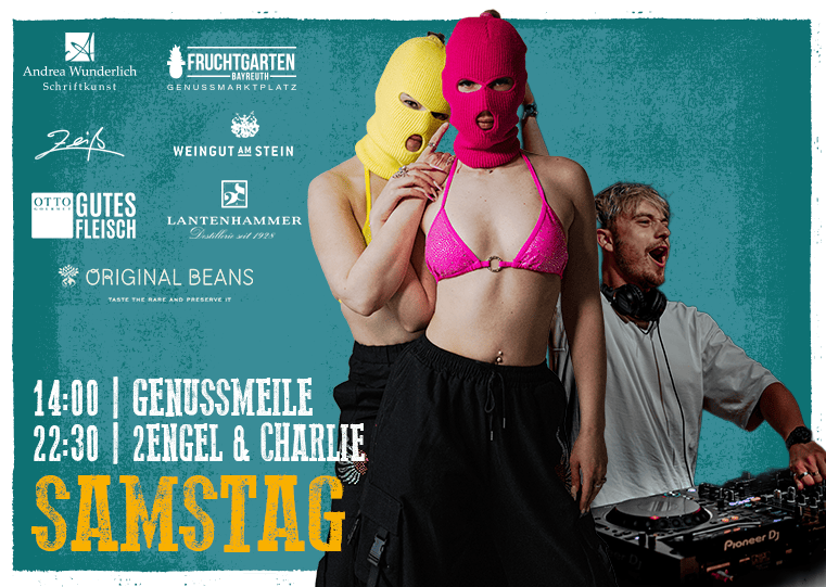 mit dabei: Weingut am Stein, Destillerie Lantenhammer, Lindelberg Brennerei Zeiß, Vaihinger, Afri Cola, Festival Food by Liebesbier, Fruchtgarten Bayreuth, Lanzendorfer Backparadies x Opel’s Backwaren, Otto Gourmet, Maisel & Friends uvm.